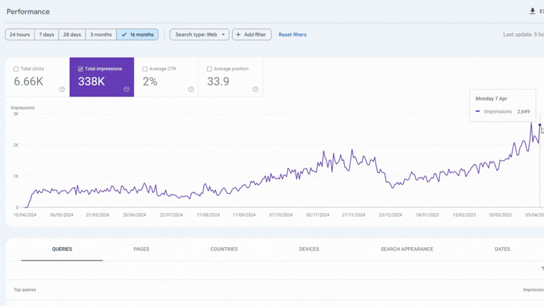 • Regular metric reviews: Every month we revisit the data together, look at positioning, impressions, and clicks—and if something's not moving the needle, we pivot.